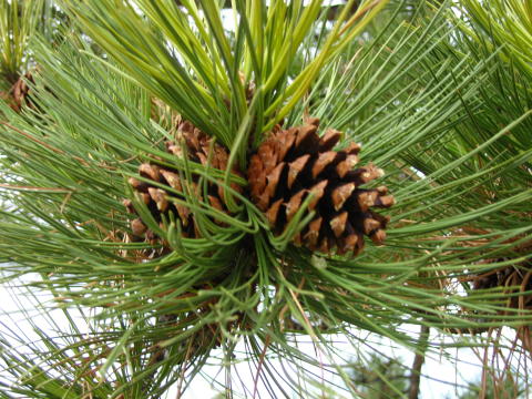 Leaves: Evergreen needles are stiff, dark yellow-green; 3 to 7 inches